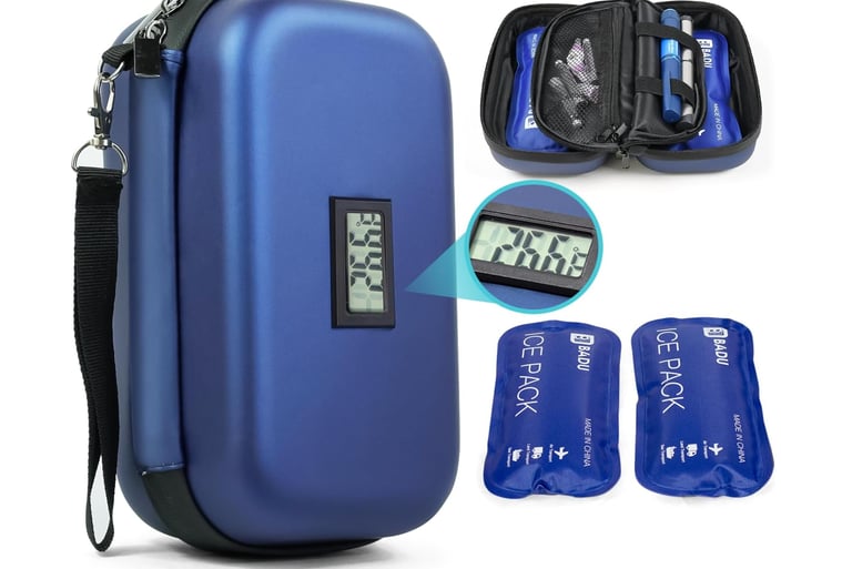 The Insulin Cooler Travel Case with Digital Temperature Display is a game-changer for travelers who rely on refrigerated medications such as insulin, growth hormones, or biologics. Its TSA-approved design ensures smooth airport security checks, while the compact and lightweight build makes it easy to carry in a backpack or carry-on. The built-in temperature display allows real-time monitoring, maintaining a stable cooling range between 2°C and 8°C to keep medications safe and effective throughout the journey. Powered by USB, it can be conveniently charged through a car adapter, power bank, or wall outlet, offering flexibility for any travel situation. With its quiet operation, durable construction, and reliable temperature control, this portable cooler provides peace of mind and freedom for travelers who need consistent refrigeration wherever they go.